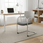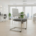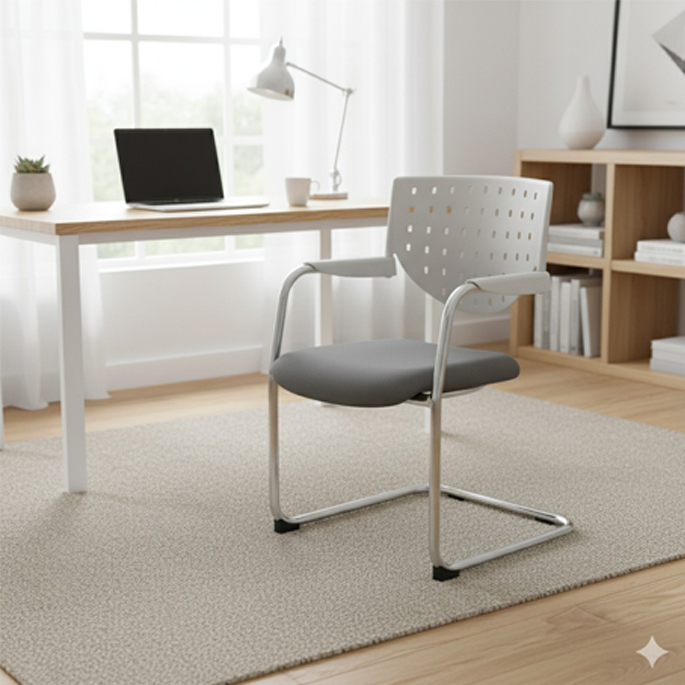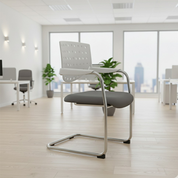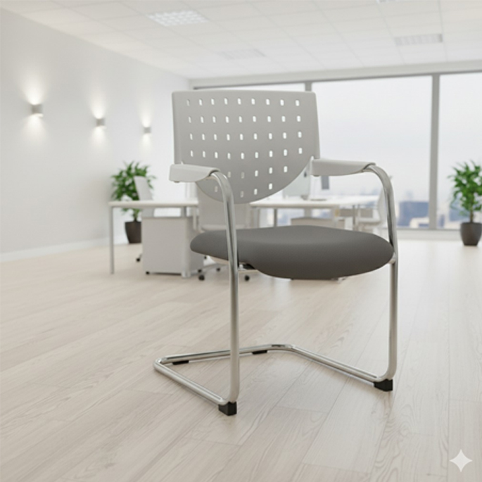 SILLA DE ESPERA EN CROMADA TIPO TRINEO CARCASA PLASTICA BLANCA ASIENTO EN GRIS