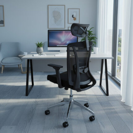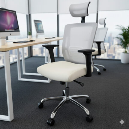 Silla Ejecutiva Ergonómica Cabecera en Tela Mesh Respaldar en en Tela e hilo Mesh Brazo 2D ajuste de Altura Asiento Tapizado en vinil ó tela Antiderrame con en espuma de alta densidad Mecanismo de pistón de altura Soporte Lumbar Base Aluminio & Rodin alto transito Consulta por colores disponibles